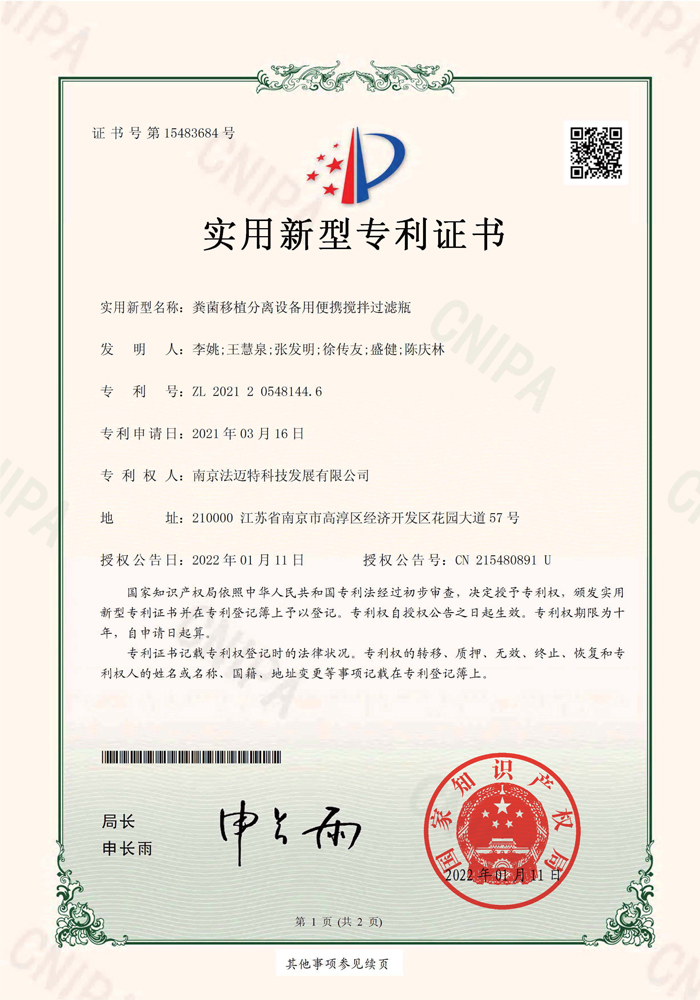 粪菌移植分离设备用便携搅拌过滤瓶