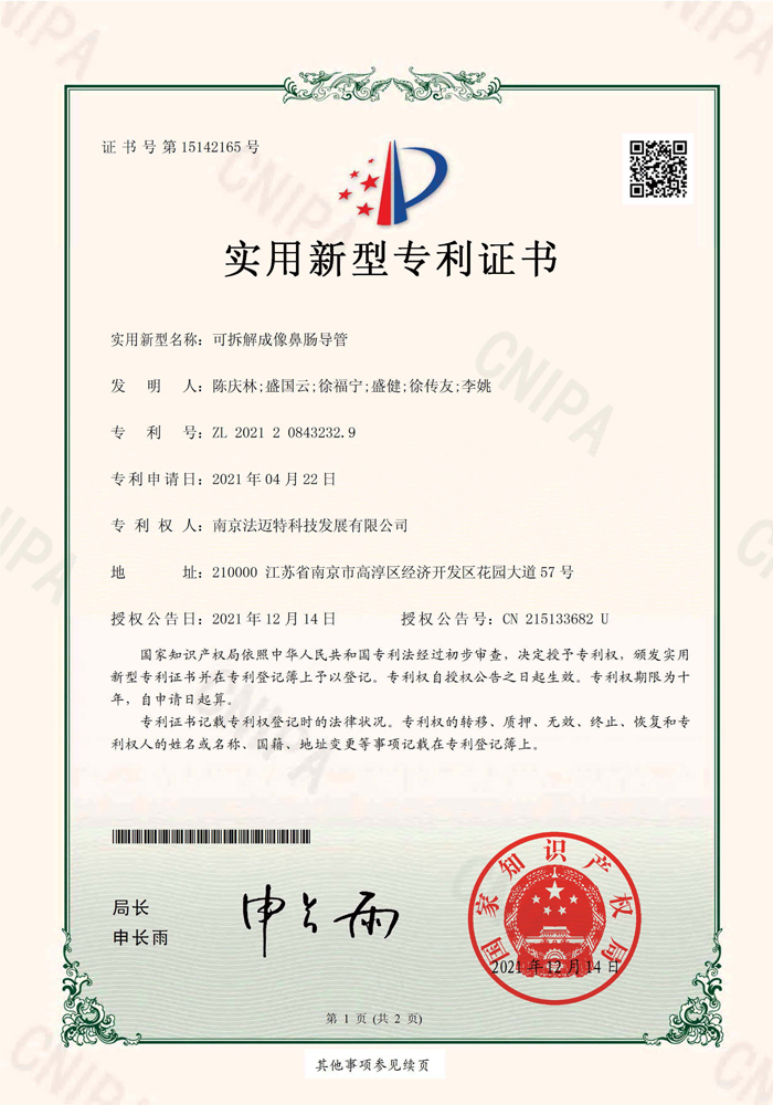 可拆解成像鼻肠导管 -