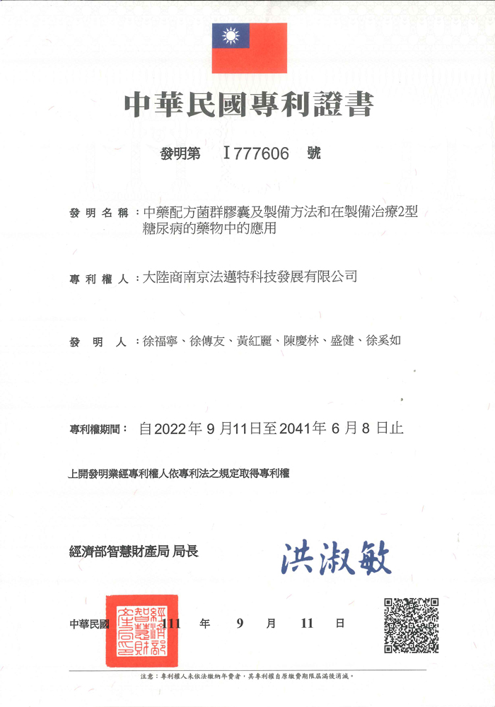 台湾发明专利证书 -