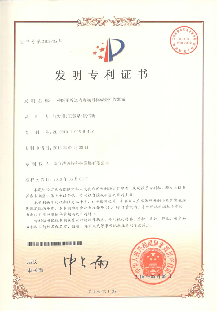 一种医用腔道内容物目标成分回收器械 -