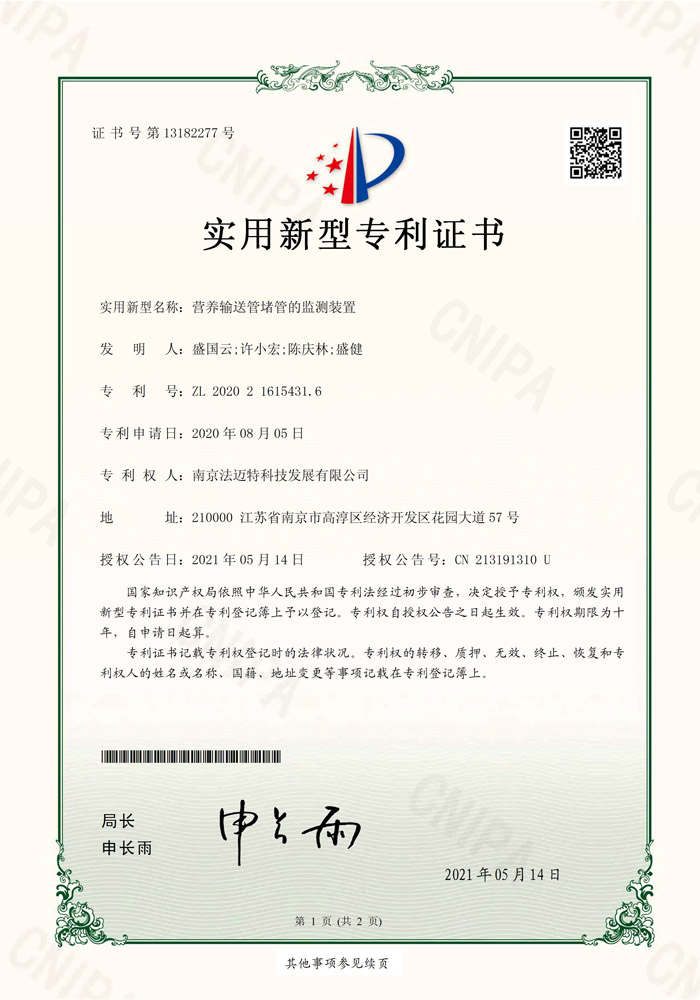 营养输送管堵管的监测装置 -