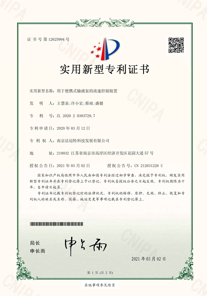 用于便携式输液泵的流速控制装置 -